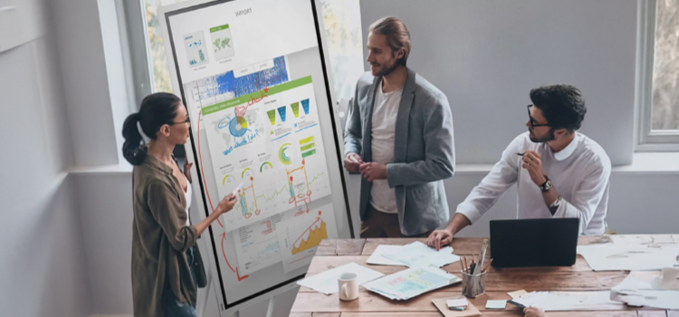 Use interactive digital signage and displays to simplify meetings and increase collaboration. Participants can use their personal devices to easily share content on the board. And built-in creative tools allow employees to craft eye-catching presentations in mere moments.
